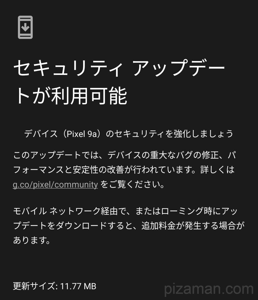 Pixelをアップデートする際は、「バッテリー残量が十分にあること」と「ネットワークに接続されていること(wifi、モバイル回線問わず)」が前提条件です。