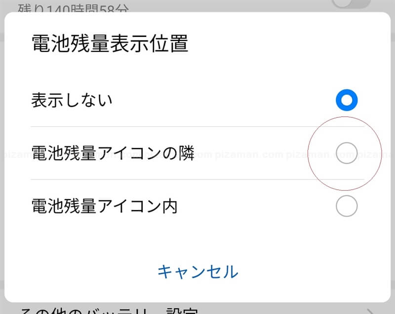 今回は「電池残量アイコンの隣」に数字(パーセント、%)表示に変更する事にしました。