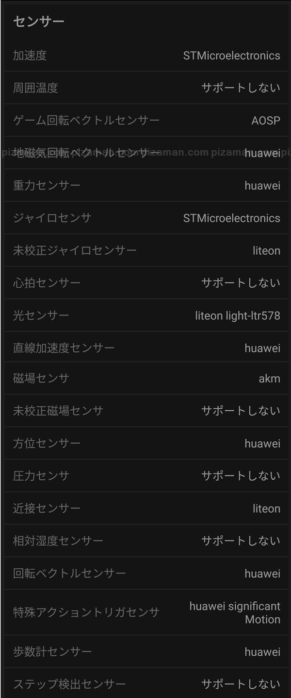 • センサー:GPS/AGPS/Glonass、加速度, コンパス, ジャイロ, 環境光, 近接, 指紋