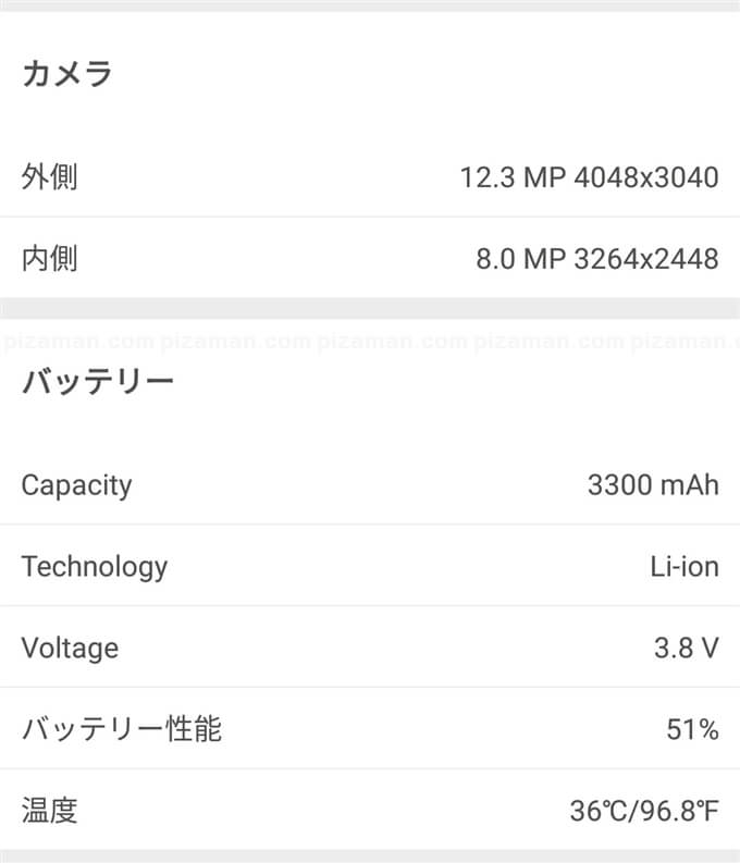 - センサー:GPS(GLONASS、BeiDou、Galileo)、加速度、電子コンパス、光、近接、ジャイロ、指紋、RGB、NFC